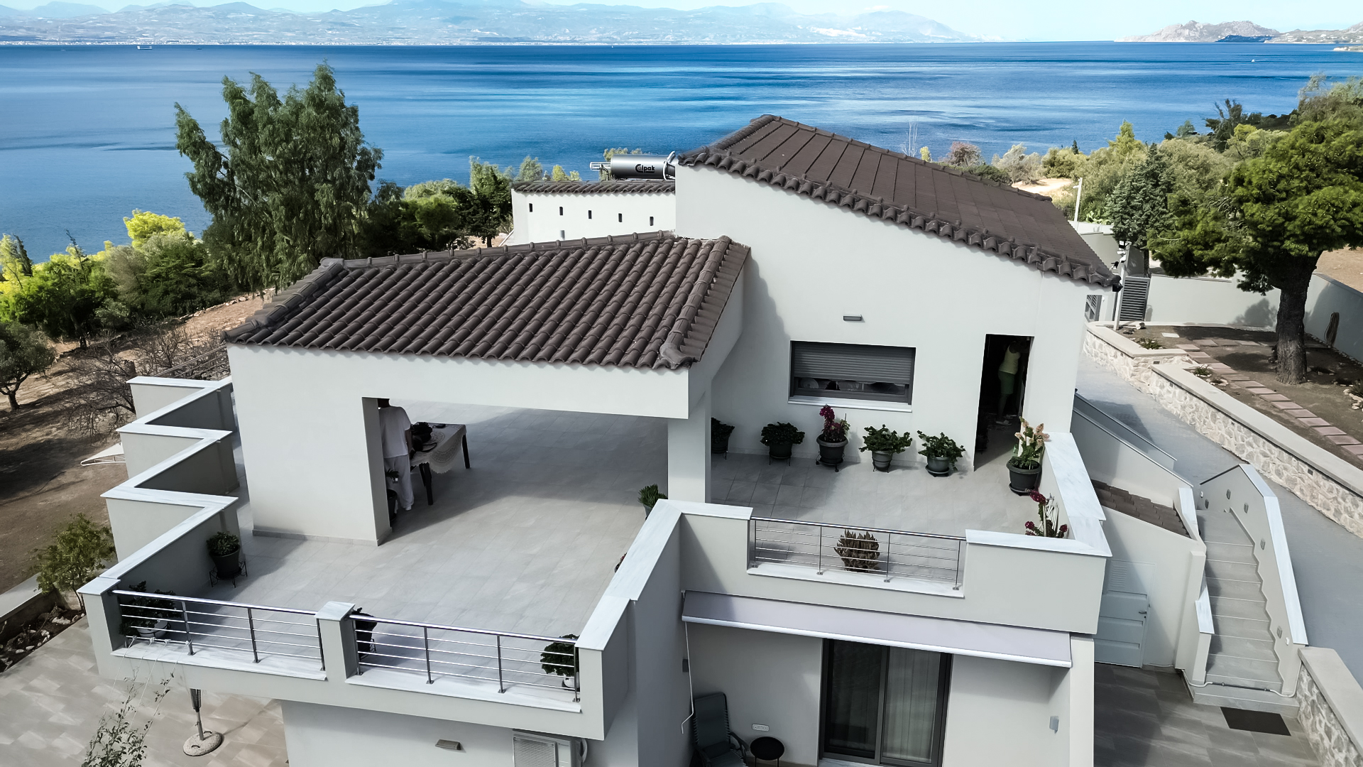 Στην κατοικία αυτή τοποθετήθηκαν σύγχρονα κουφώματα αλουμινίου, μελετημένα ώστε να εξασφαλίζουν υψηλή αντοχή και προστασία από τις έντονες καιρικές συνθήκες της παραθαλάσσιας περιοχής.